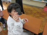 など、たくさん考えを発表します。そして、答え合わせ。なんと、針で指したくらいの大きさと知ると驚きの声があちこちで響きます。実際に一人ずつ黒い紙に針で穴を開けたものを配ってもらうと、